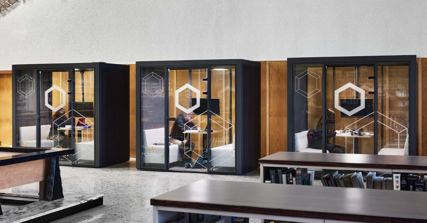 La Mute BoxMC est offerte en version Solo pour une personne ou en version Collab pour les rencontres de 2 à 4 collègues. Tantôt zone refuge, tantôt enclave pour une rencontre multimédia, la Mute Box permet d’augmenter le degré d’intimité et de bien-être dans les espaces ouverts.