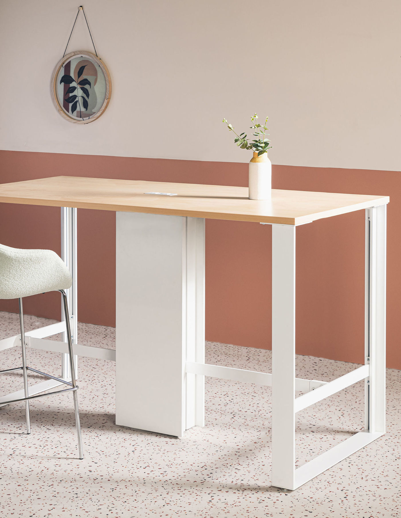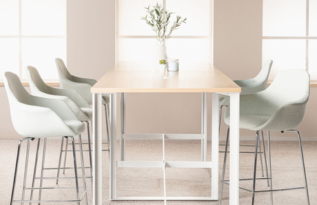 Offerte en différentes hauteurs, AGORA SQUAD aide à promouvoir la créativité et la collaboration en favorisant les rencontres debout pour des séances de travail dynamiques. Les tables hautes sont désormais munies d’un appui-pied créant un point focal pour les agencements linéaires. Les panneaux aux extrémités ajoutent un élément attrayant au design de l’espace. Une boîte cache-fils complète l’effet épuré de l’aménagement de l’aire de collaboration.
