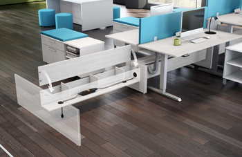 Le bureau Assis Debout pour aires ouvertes Elevation est la solution ergonomique pour un travail tout en flexibilité et en confort. Chaque surface, munie d’un panneau de commande électrique, s’élève et s’abaisse afin de passer de la position assise à la position debout en quelques secondes. Le résultat ? Un environnement de travail plus sain et plus productif.
