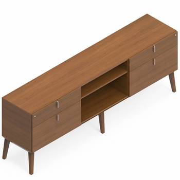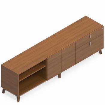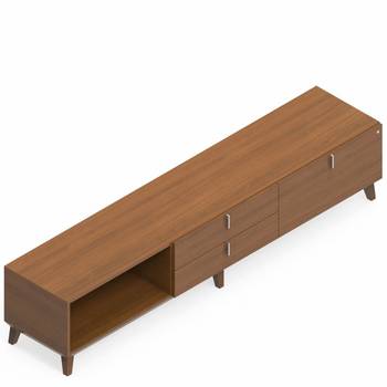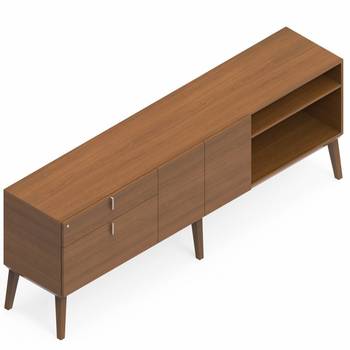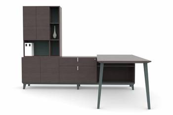 - Lorsque le placage est spécifié, des pieds effilés en bois massif (noyer, cerisier, chêne et érable) sont utilisés pour soutenir la péninsule, les tables de travail, de collaboration et d'appoint.