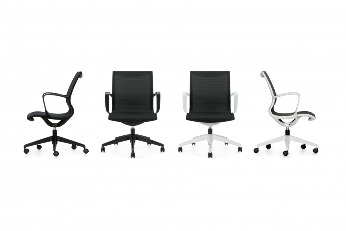 Le dossier et le siège en tissu maillé sont offerts en trois couleurs : minuit, orage et colombe;