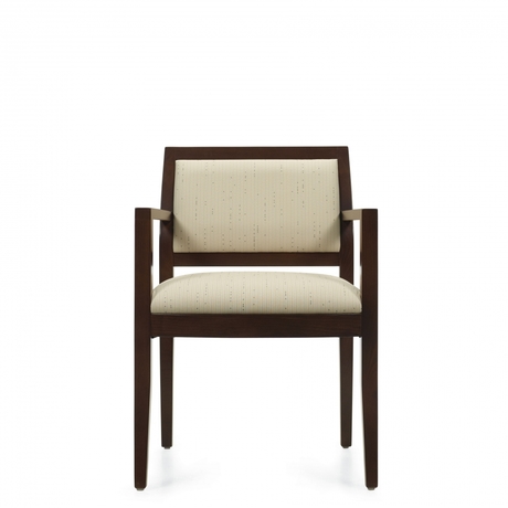 Layne consiste en un siège d'appoint transitionnel minutieusement conçu. Le siège est offert en trois styles de dossier rembourrés ou en bois partiellement ouvert, avec ou sans accoudoirs. La gamme se décline dans 14 finis de bois.