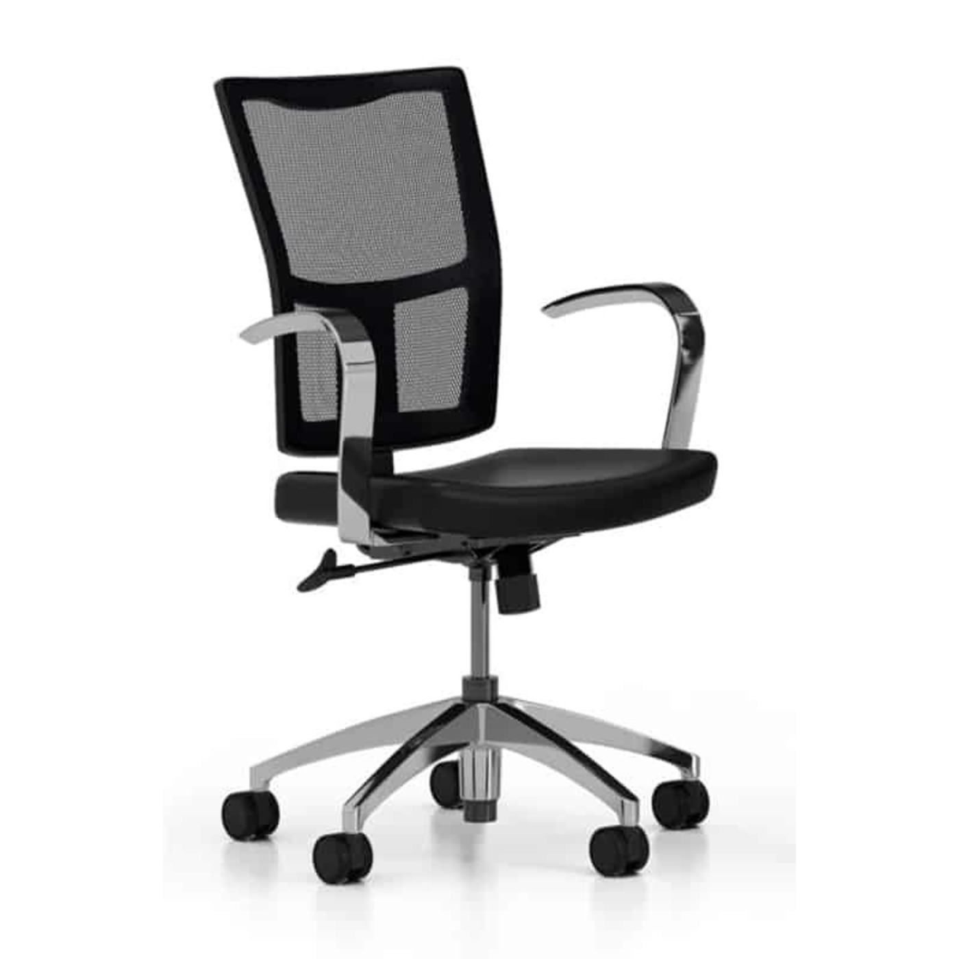La chaise multitâches Cyrus par Logiflex, avec son style moderne, est une chaise de salle de réunion parfaite offerte, entre autres, avec des accoudoirs fixes en aluminium qui assurent l'uniformité autour de la table de conférence.