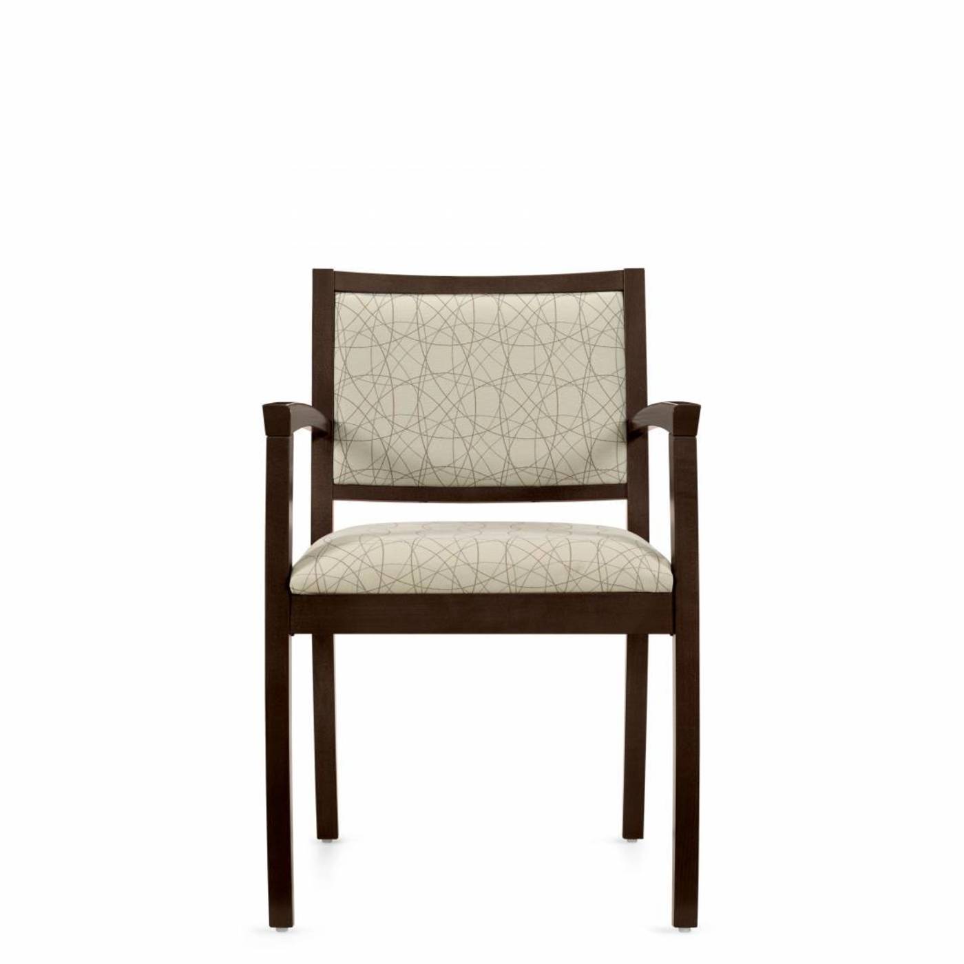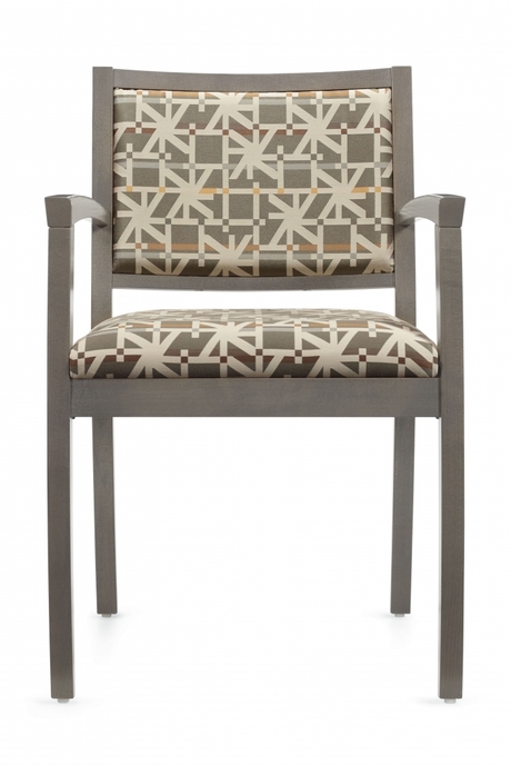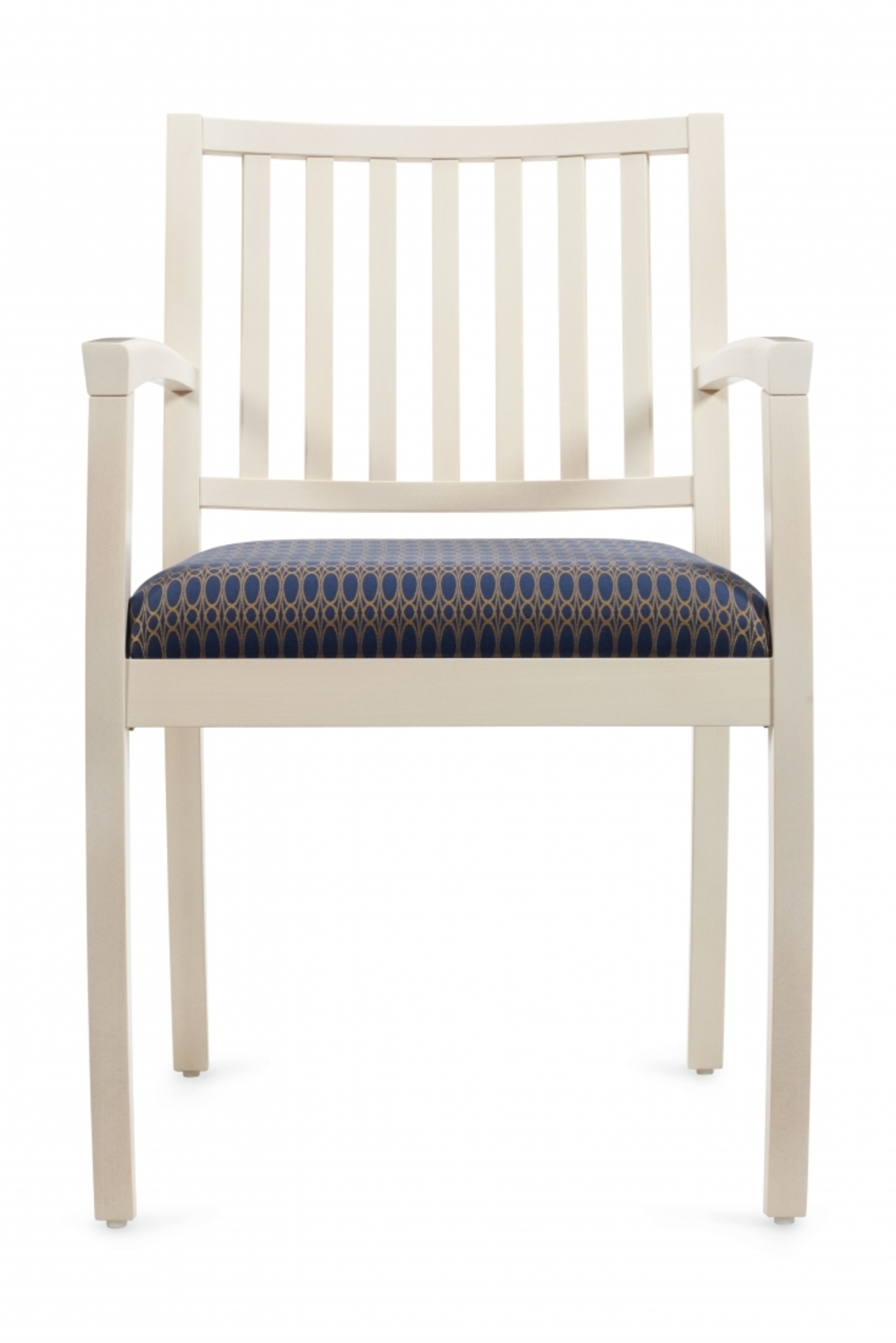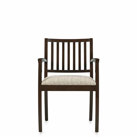Elegant wood seating with a choice of an upholstered back or wood vertical slat back.