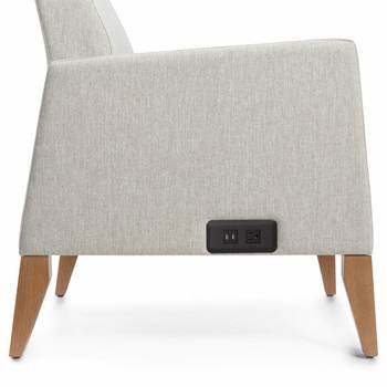 Calidon™ seating and occasional tables share a distinctly modern appearance. With well-balanced and full-frame, solid hardwood construction, Calidon is a versatile solution combining comfort, style and durability for years to come. Fully upholstered lounge models include optional integrated power and USB charging for easy access in either front or side locations. Guest and lounge seating feature an integrated wipe-out design to support cleaning protocols from workplace and hospitality to healthcare environments.