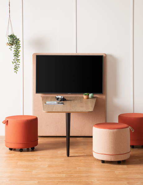 This free-standing unit, which comes in two widths, combines with Coast seating to create a self-contained, cozy meeting area. Coast Media allows you the freedom to set up anywhere within your workspace. Create your customized look with our wide selection of fabrics and colours, and standard or reverse knife-edge laminated table top. This impeccably designed, extremely stable, highly versatile booth will fit perfectly within your office layout, whether it's in a wide open-plan area or in a small lounge space.