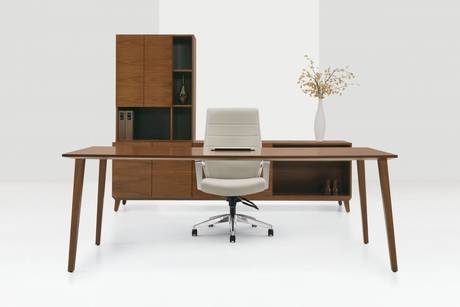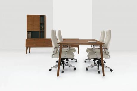 • When veneer is specified, tapered, solid wood legs (walnut, cherry, oak and maple) are used to support the peninsula, work, collaboration and occasional tables.
