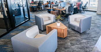 Cuadro lounge furniture is the building block for your next design. Use it individually or shape lounge space in three dimensions with 30” geometric cube chairs that are square for design, yet round for comfort, square ottomans and table for linear designs as well as angled tables for non-linear layout possibilities.
