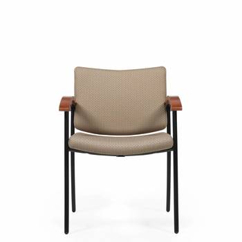 A sculpted back with sweeping wood arms and metal frame provides clean styling for every area of the office environment.