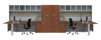 • Worksurfaces, drawer and cabinet fronts use genuine wood veneer while the chassis and cabinets are finished in laminate or wood veneer.