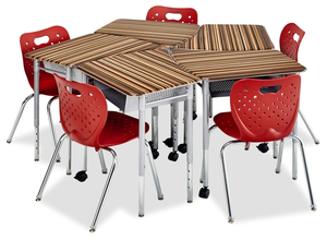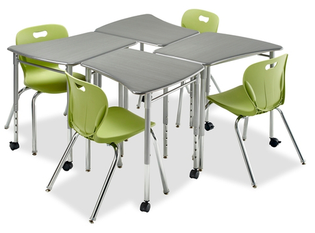 The ideal group size for collaborative learning! For traditional and progressive teaching styles. The Alumni Flow Desk was developed as a tool for students and teachers to implement common core learning concepts. It can be arranged in collaborative groups or traditional rows. In its ideal group configuration of 5, the Flow Desk was designed to maximize the use of limited space commonly observed in today's classrooms. Optional casters make this desk mobile and easy to move into multiple configurations. These desks can then be pulled apart for individual study and testing purposes. Full-frame construction takes the wiggle out of learning.