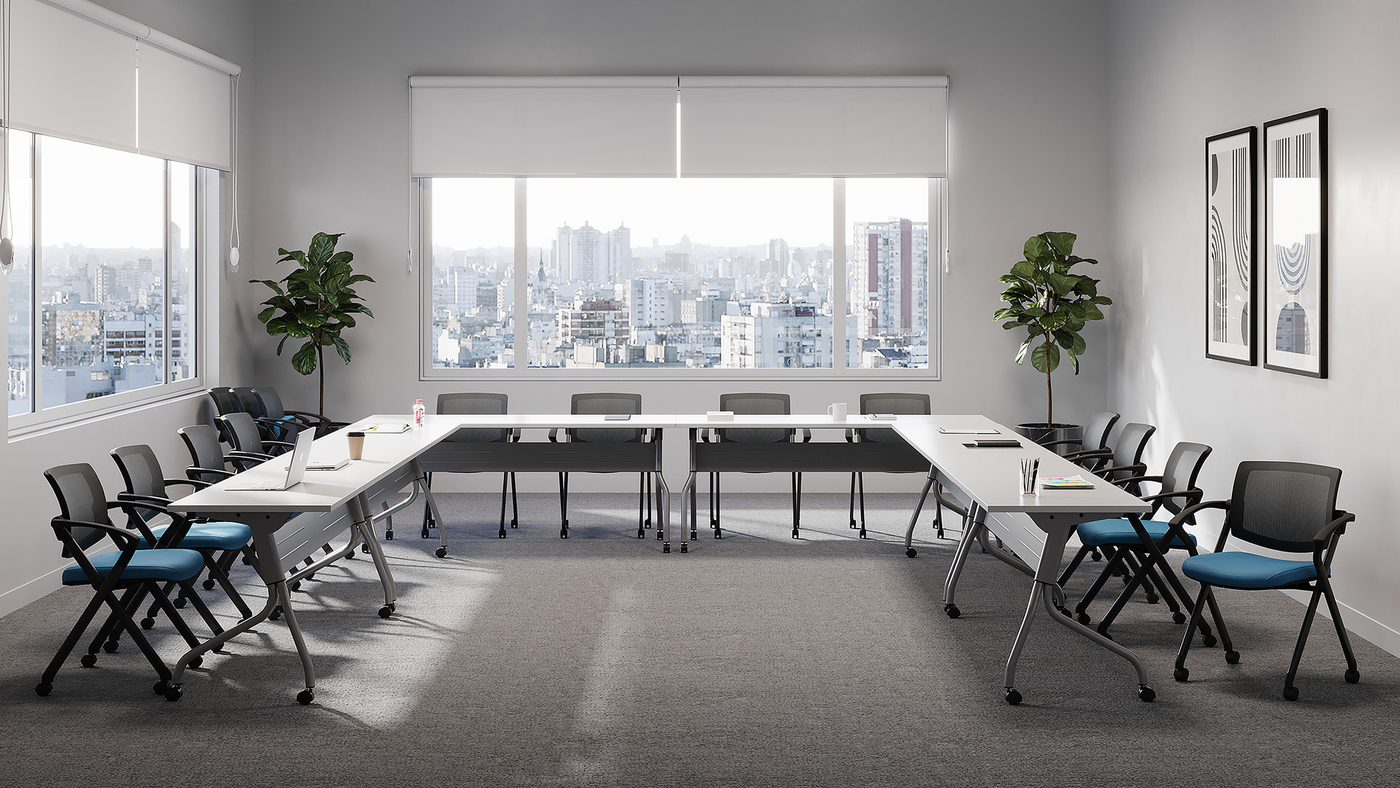 - feature a flip-up seat allowing chairs to stack horizontally