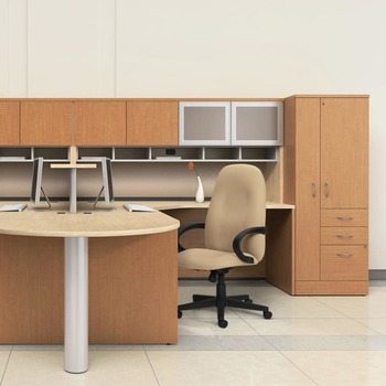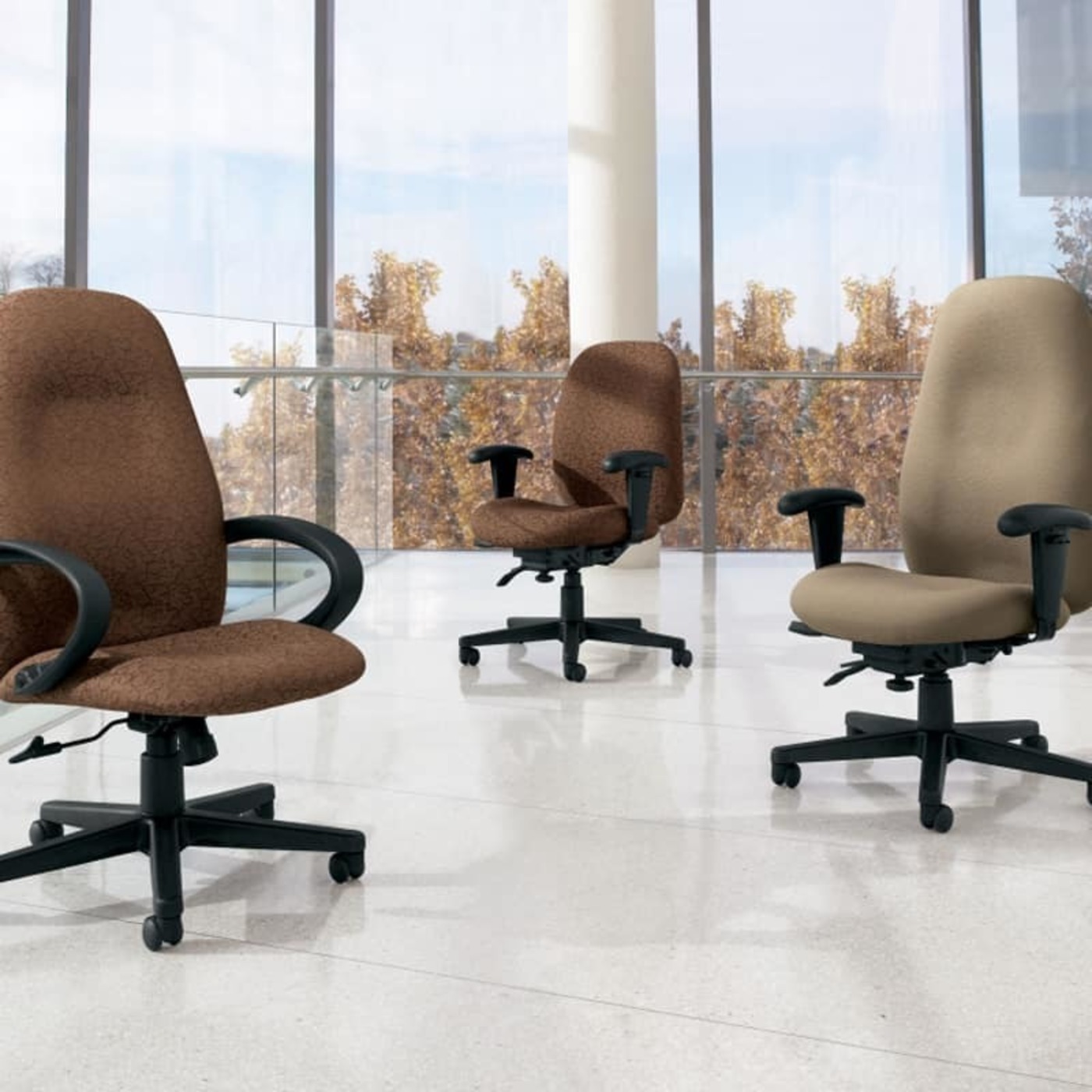 The Entreprise multi-tasking office chair by Global Furniture with its knee-tilt seat, high back, and delicately sculpted cushions provides incredibly comfortable lateral and lumbar support.