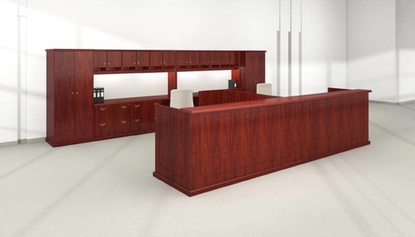 Sophisticated craftsmanship and unparalleled elegance characterize the Philadelphia reception furniture collection by Global Contract. Solid wood edging overhangs the sides, solid wood moldings line the pedestals and all furniture features brass hardware. For superior selection, only the finest flawless hardwoods are hand selected, ensuring the highest quality and consistency. The line is available in cherry, maple, walnut and oak finishes.