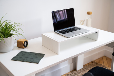 An Ergonomic Workstation. The perfect combination to vary your positions and avoid leaving everything lying around on your desk. You can equip your desk with a screen riser for a more ergonomic office desk and combine it with the multifunctional pigeonhole which will allow you to work in a standing position. An all-in-one as they say. Pigeonhole dimensions: 11" X 24" X 12". Screen riser dimensions: 11" X 22 1/4" X 5". Made of 11/16" thick thermally fused laminate (TFL). Pigeonhole shelf can be adjusted in two pre-set positions.