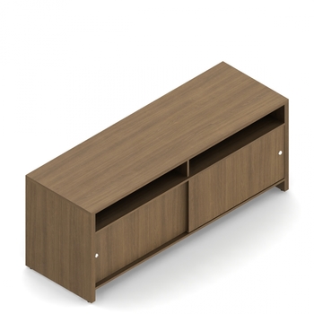 • Open storage pieces, floating modesties and overlapping surfaces create visual appeal.