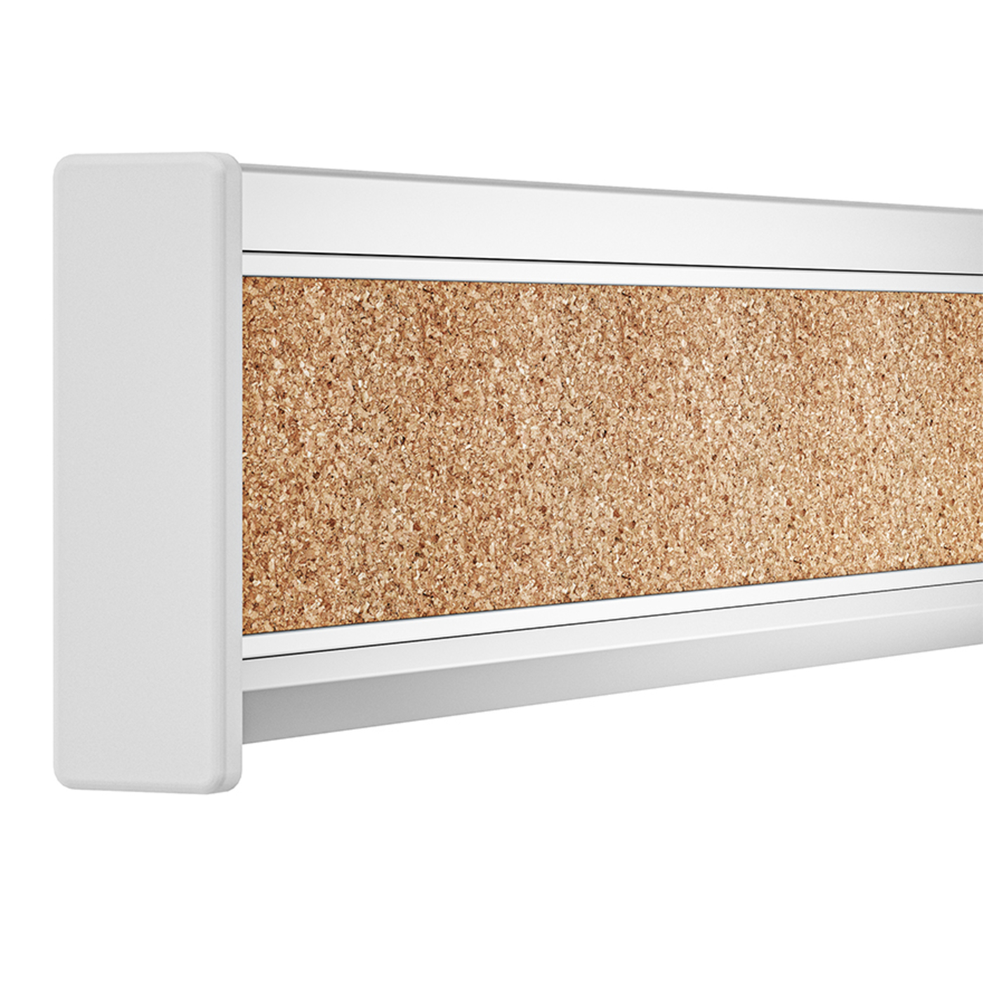 A variety of tackable material colors are available as infill options or infill can also be installed in a convex orientation for a smooth, non-tackable finish. Tack Rail is 96”w with tackable infill. It has a clear anodized (CA) aluminum rail finish and a 1/4” tackable strip depth. Can include EganMetallic end caps (ACTSECTREM).