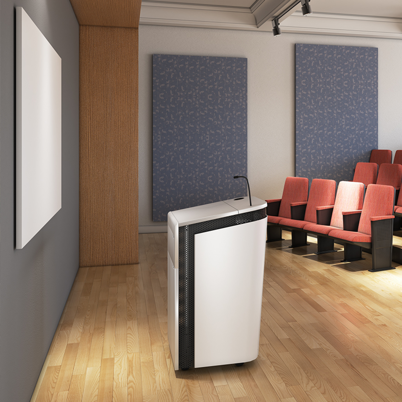 Interactive presentations are easy, with a fully integrated interactive flat panel - finger touch control that even guest presenters can use, because it connects to the PC with no drivers to install. With room for options - a cup holder, a microphone, room controls - the presenter enjoys total control of their environment.