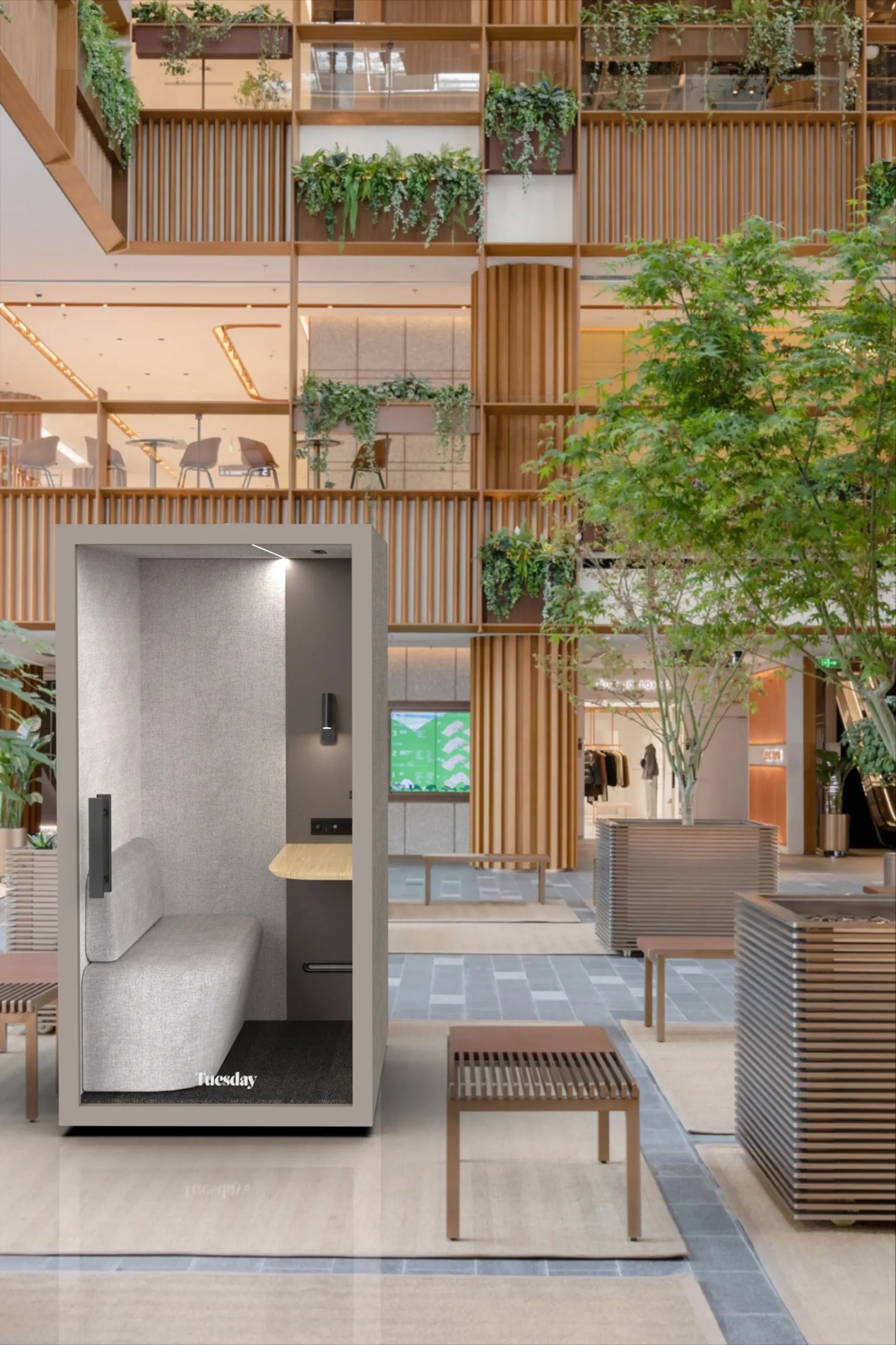 - Comfortable fabric bench seating