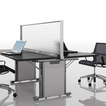 V-Series TableScreens contemporary styling is based on the Egan Lite Mobile design and is available in standard heights of 8”, 12”, 14” or 18”, and standard lengths of 24”, 30”, 36”, 48”, 60” and 72”. Additional sizes may be ordered through our Custom Response Program. Not magnet-compatible with Fabric or Glass surface options. Magnet-compatible with EVS surface option.