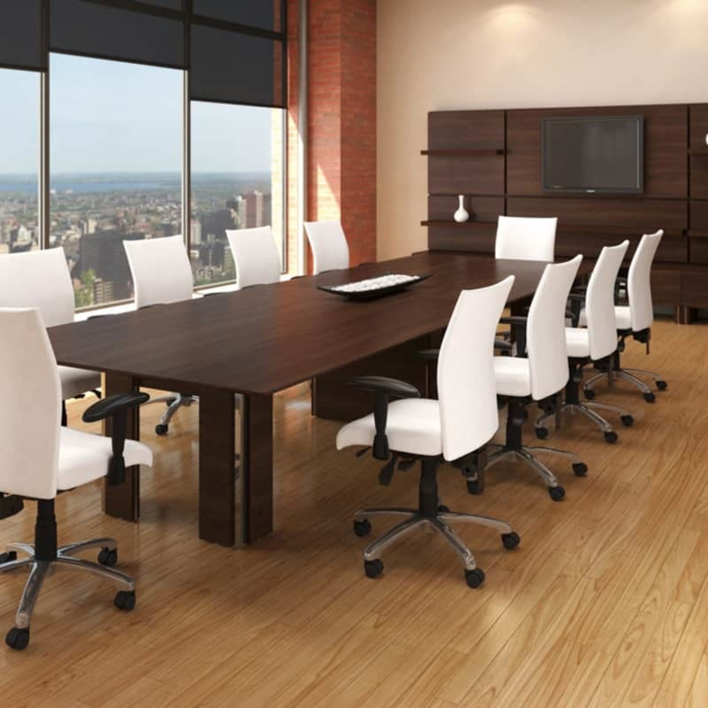 The Wellington conference table and table bases by Logiflex will add a touch of elegance to your meeting room. With its chrome accented base, it includes several surfaces in various shapes. It is equipped with a cable management system that routes power and communication elements to the table surface.