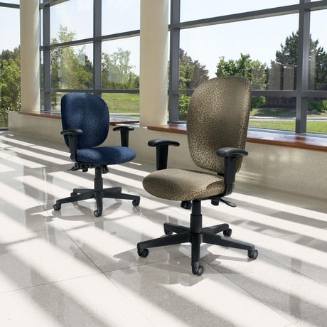 Adjustments include pneumatic seat height, seat tilt with infinite lock, back height and angle adjustments, tilt-tension control and width adjustable arms (on selected models).
