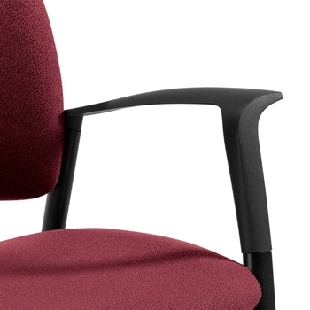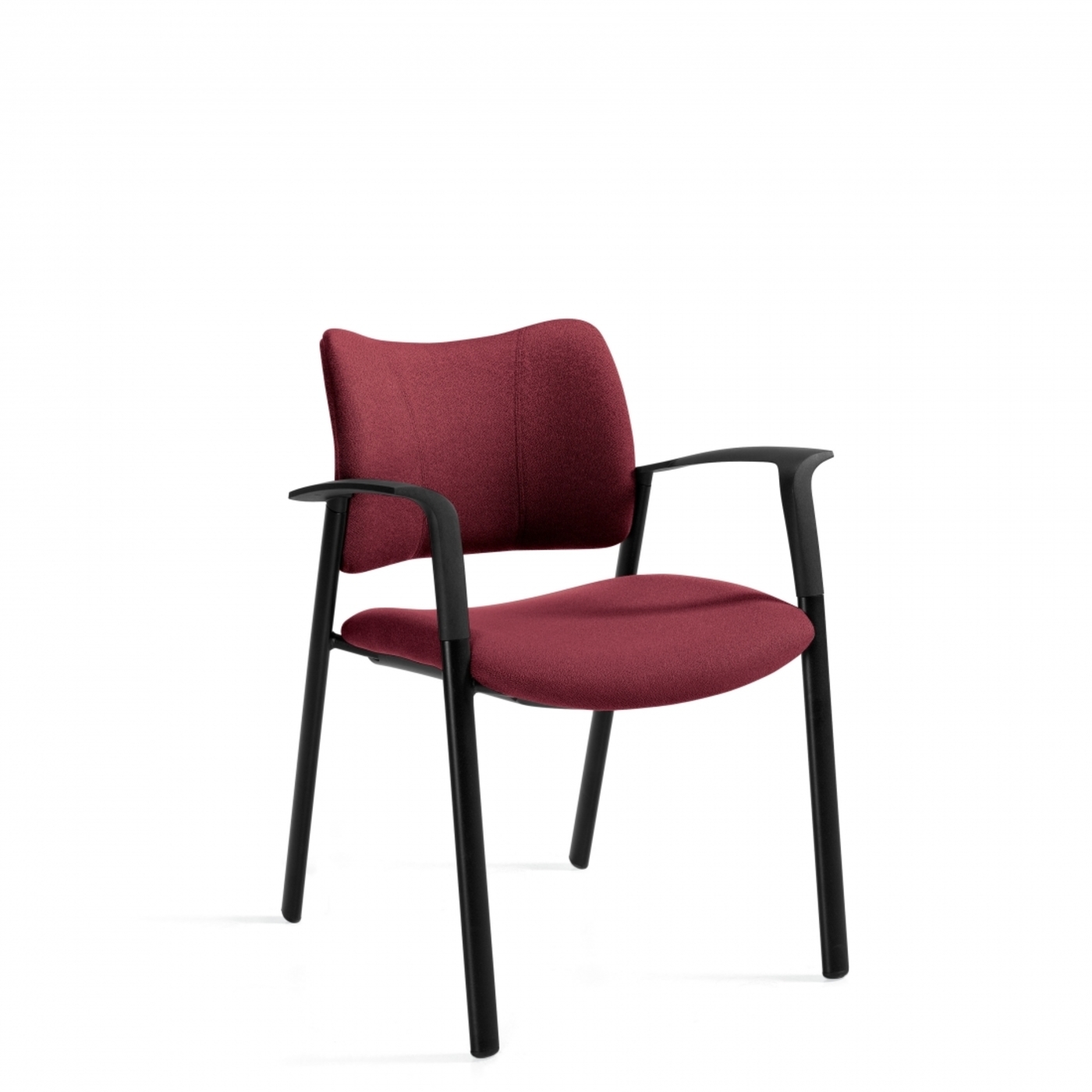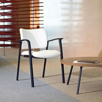 Contemporary design-sensitive guest seating featuring wide flat, flared arms and elliptical tubular framing.