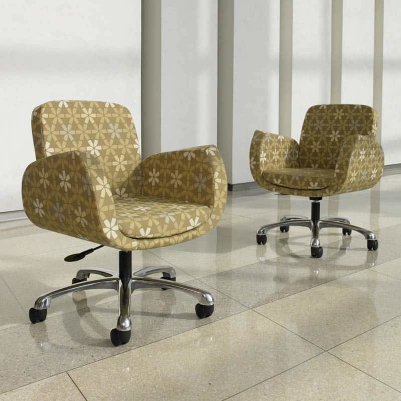 Deux différents mécanismes sont proposés pour les modèles à basculement, lesquels présentent un réglage pneumatique de la hauteur du dossier et un piètement araignée à cinq branches en aluminium poli doté de roulettes à doubles galets. Un piètement noir moulé par injection est aussi offert en option sans supplément - veuillez préciser (BK).