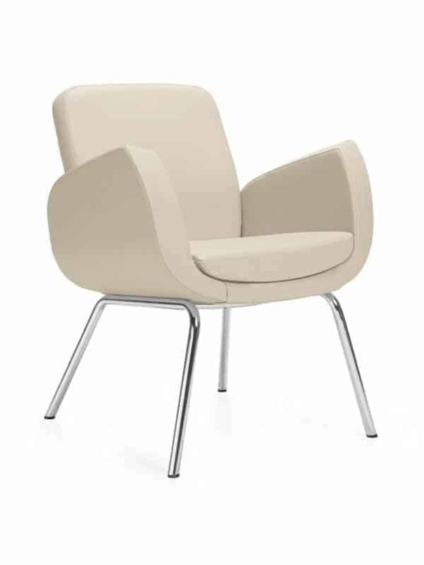 La gamme comprend un fauteuil à basculement, un fauteuil pivotant, un fauteuil à quatre pieds et un pouf.