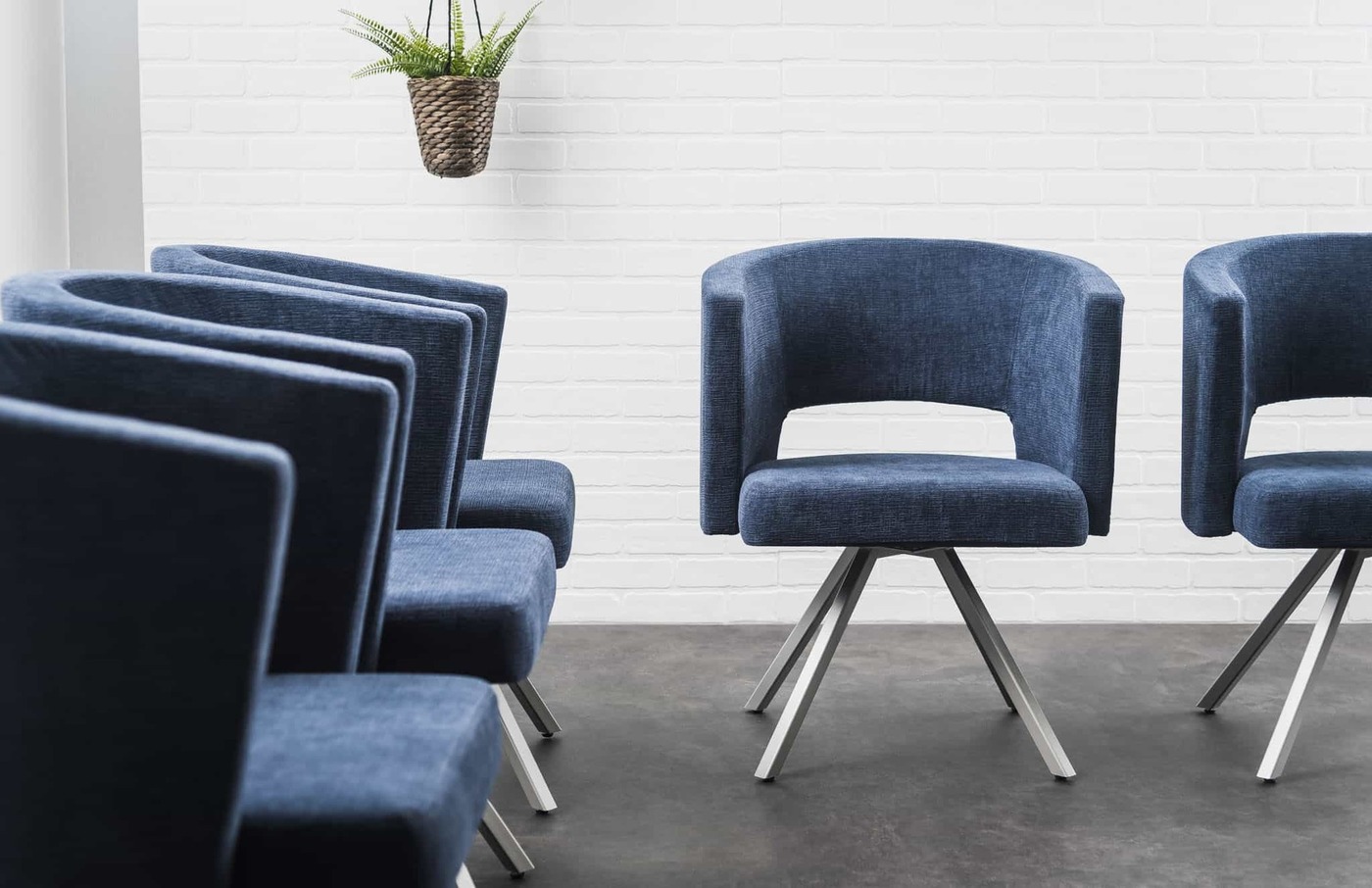La collection de fauteuils Hug de Rouillard saura vous envelopper de ses courbes à la fois accueillantes, sophistiquées et contemporaines. La mince ouverture horizontale à la base du dossier lui confère un profil distinctif.Le fauteuil s’intègre bien dans tous les environnements grâce à son pied circulaire, sa base à quatre branches, sont design en trapèze ainsi que son mécanisme d’auto-retour. Pour un look plus chaleureux, optez pour la base fixe en bois.