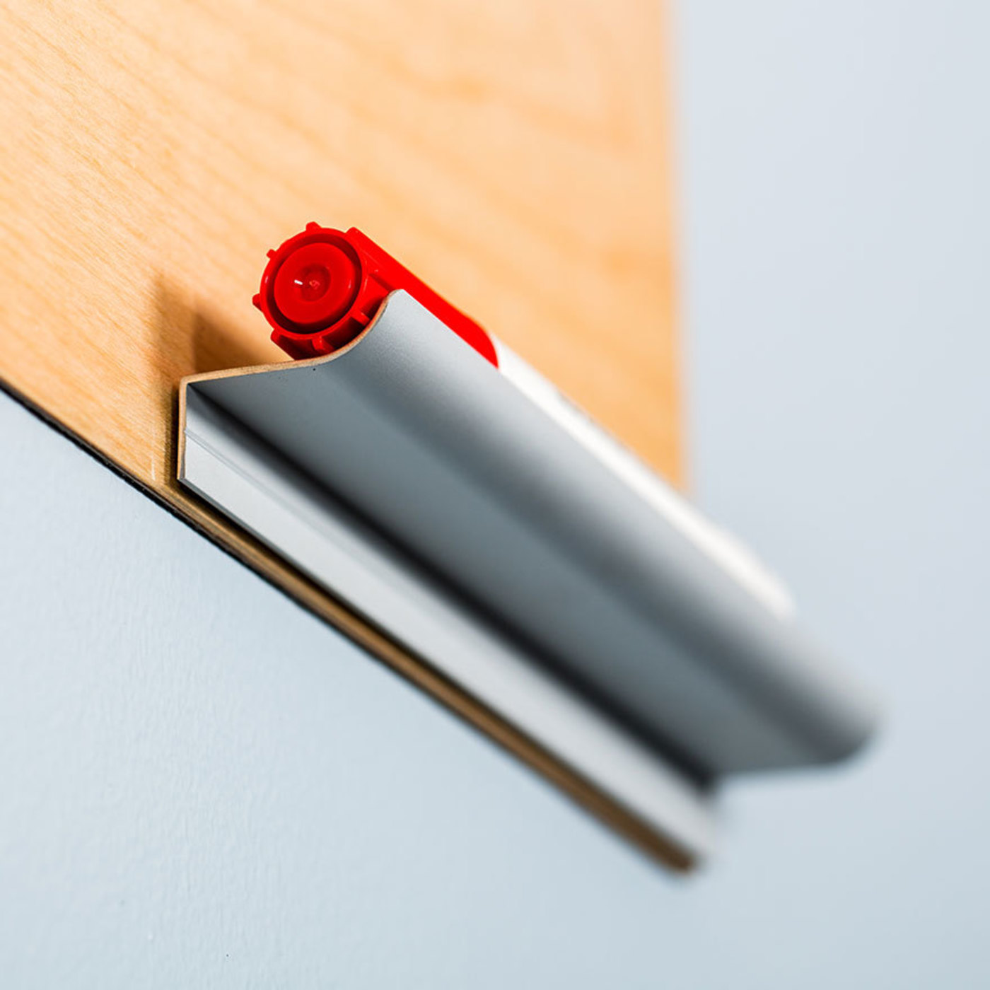 S'installe via le support adhésif inclus ou utilise la rainure en V intégrée pour guider l'utilisation de votre propre fixation murale. Montez en dessous, à côté ou directement sur n'importe quel tableau d'affichage EganAero (ou GlassWrite™).
