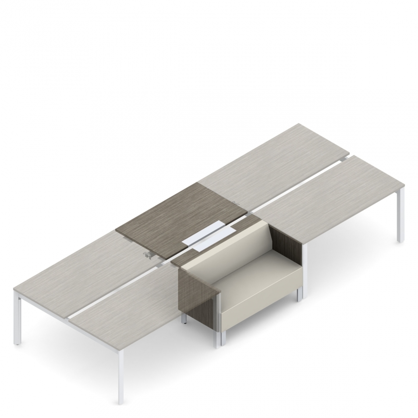 Les surfaces de transition Bridges permettent de jumeler les bancs et les bureaux aux systèmes de différentes manières.