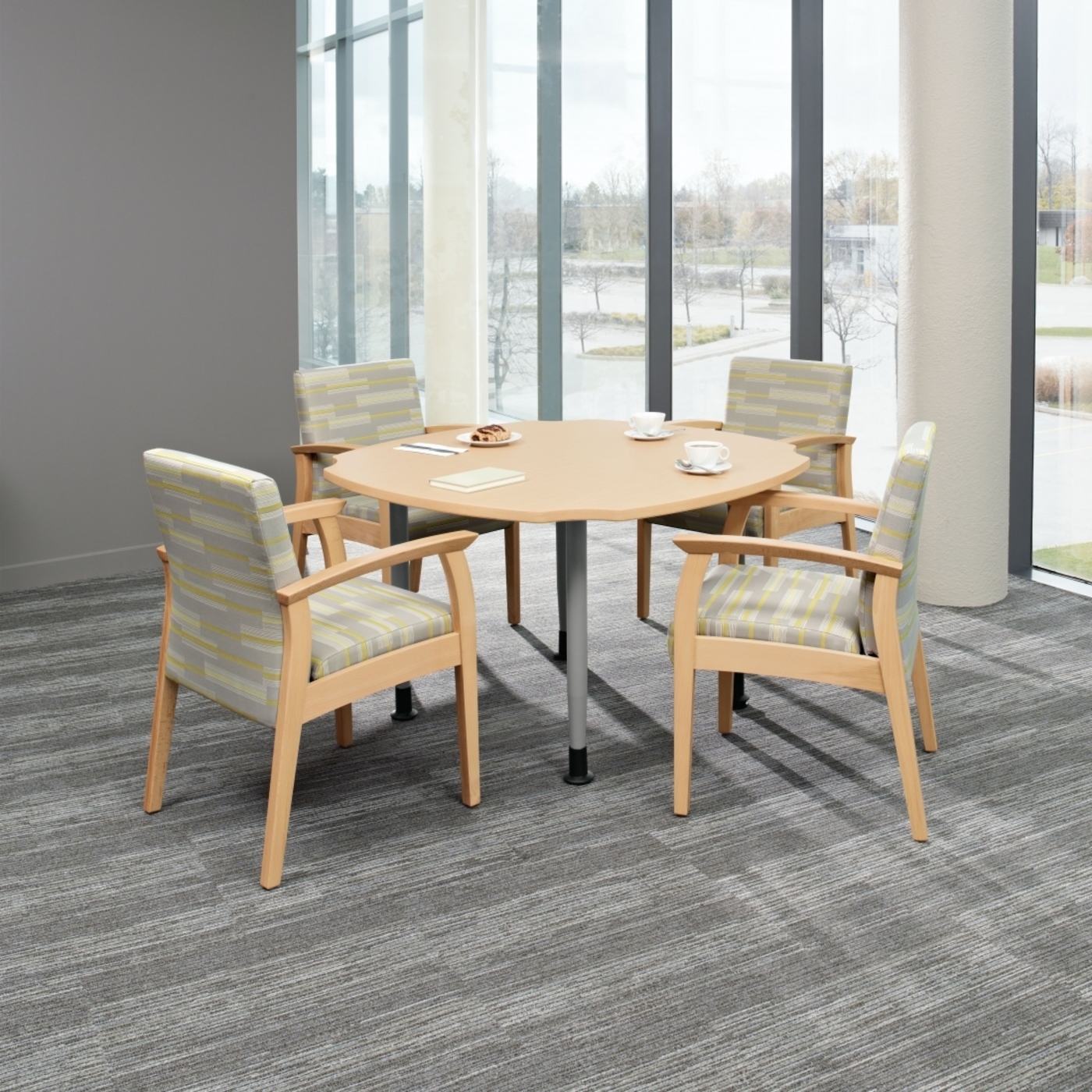 La table Floral combine à la fois attrait conceptuel et fonctionnalité ergonomique. La surface a été conçue pour favoriser l’interaction entre les soignants et les personnes qui dépendent d’eux pour les repas et les activités ou qui ont une mobilité réduite. Les tables présentent une courbe concave douce à chaque coin qui permet au soignant de se placer dans une position favorisant une bonne ergonomie, réduisant les mouvements inélégants et les efforts indus. Ainsi, les soignants courent moins de risques de blessures lorsqu'ils effectuent leurs tâches routinières pendant les repas ou les activités. Outre la belle apparence et l'ergonomie des tables Floral, les soignants adorent ce produit pour sa capacité à délimiter l'espace de chaque utilisateur, ce qui est idéal dans les situations où les violations de l'espace personnel peuvent entraîner des problèmes.